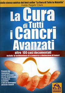 avviato irreversibilmente. La Cura di tutti i Cancri Avanzati è un libro molto importante, “vitale” nel vero senso della parola per tutti coloro che soffrono di cancro o che hanno parenti ed amici invischiati in questa triste vicenda. La dott.ssa Clark con il suo metodo di cura ottiene una percentuale di guarigione del 95% e ricordiamo che la ottiene su malati cosiddetti terminali cioè con un cancro allo stadio avanzato e ritenuto incurabile dalla medicina ufficiale. Ovviamente è un libro che andrebbe studiato con molta attenzione anche da parte di medici e personale sanitario. Poter guarire in pochi mesi